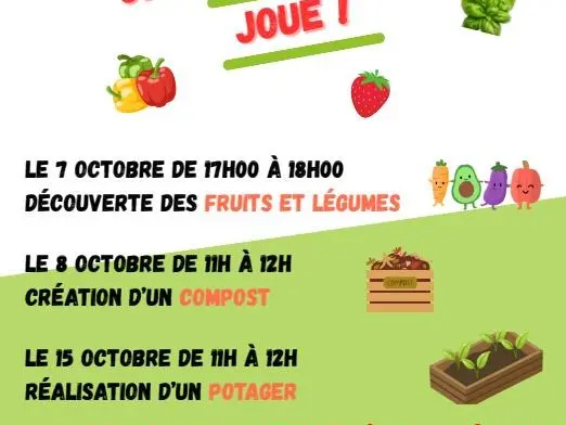 Trois ateliers gratuits sur inscriptions, pour découvrir l’écologie, le compost et goûter des fruits et légumes.