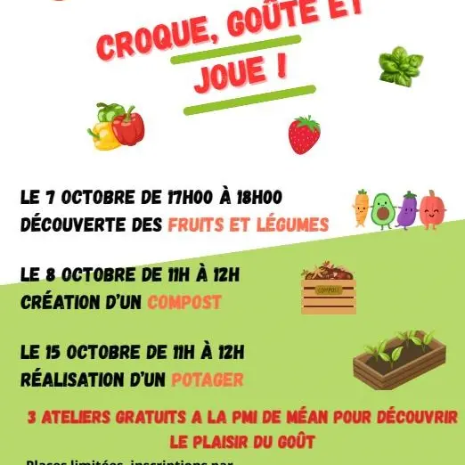 Trois ateliers gratuits sur inscriptions, pour découvrir l’écologie, le compost et goûter des fruits et légumes.