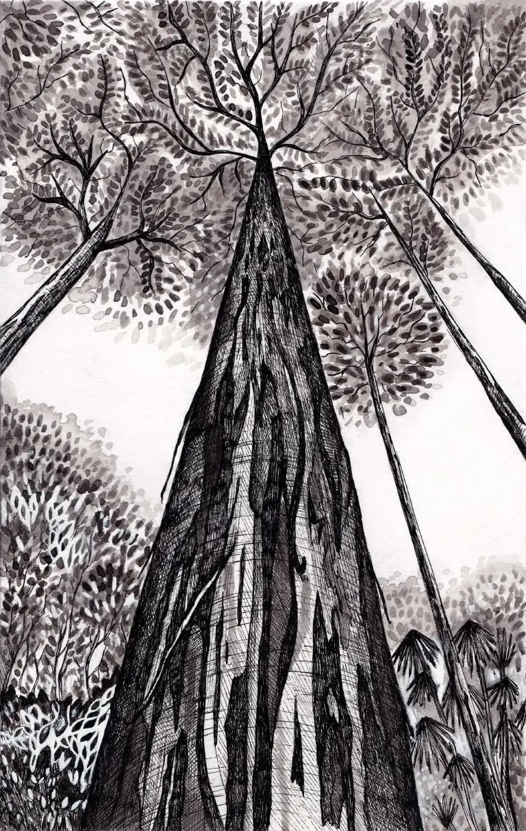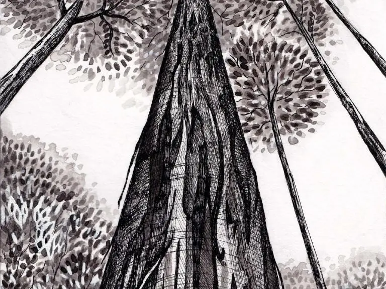 Fruit de la collaboration entre l’artiste visuelle Elsa Mroziewicz et l’autrice et créatrice sonore Cécile Palusinski, « Arbres-Mondes » est une exposition immersive et poétique, qui mêle dessins, textes (haïkus mis en musique par Jean-Paul Le Goff) et des technologies numériques.