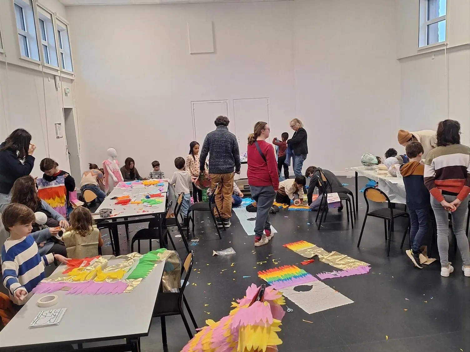Après une saison à concevoir un gigantesque animal aquatique, on sort la tête de l’eau pour s’envoler vers les nuages. Au fil des cinq séances, Béatrice Bailet accompagne chacun et chacune dans la confection de son costume d’oiseau. À la fin de chaque atelier, les participants repartiront avec un nouvel élément de leur costume de volatile (à revêtir aux futures boums des kids).