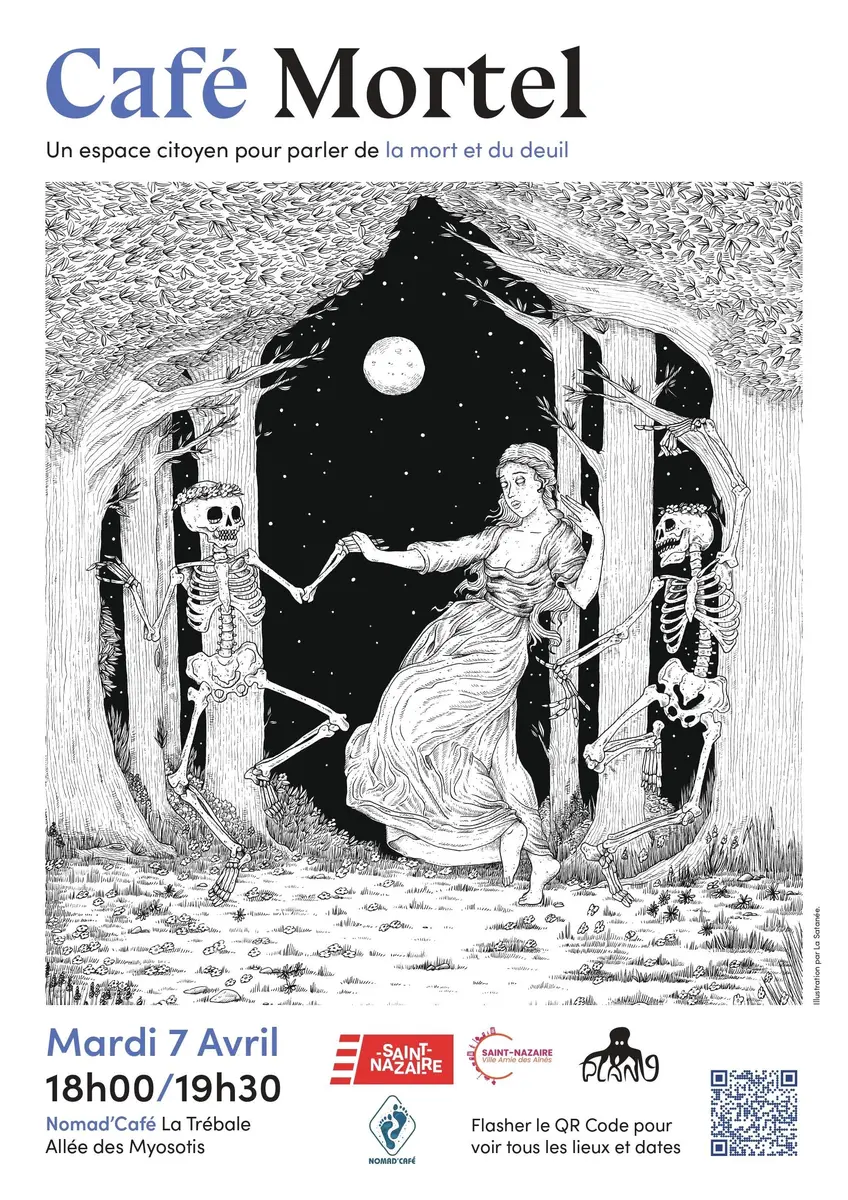 Un espace citoyen pour parler de la mort et du deuil organisé par la ville de Saint-Nazaire, Nomad’café et animé par Elvire Bornand de Plan 9.