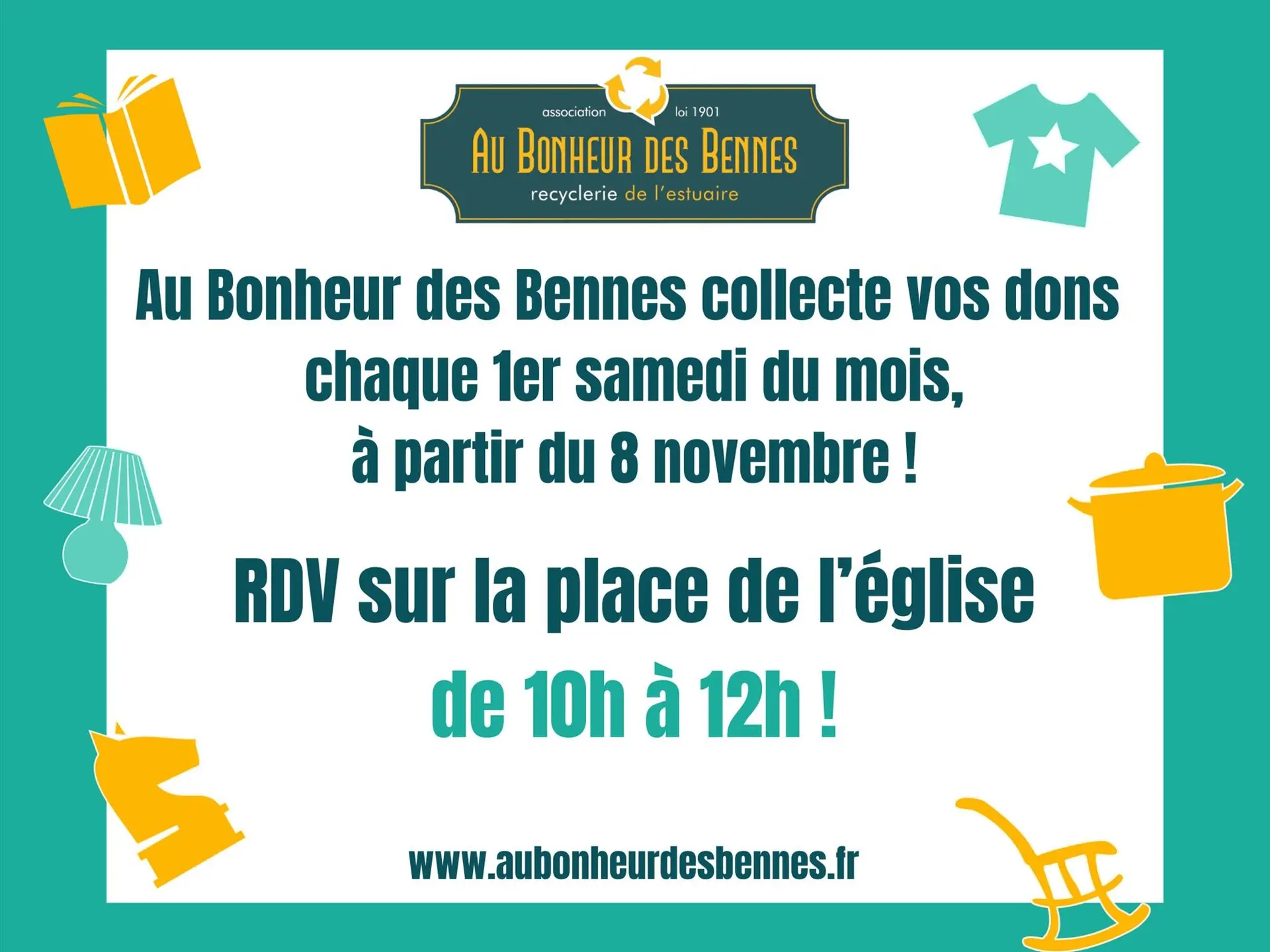 En plus de nos présences habituelles en déchèteries (Cuneix et Pornichet du mardi au samedi) nous lançons un nouveau type de collecte, sur la place de l’église de Saint-Malo-de-Guersac, chaque 1er samedi du mois, de 10 h à 12 h. Rejoignez-nous !