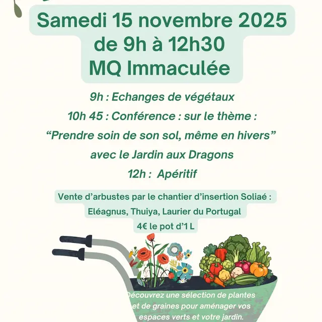 10 h 45 : Conférences sur le thème "Prendre soin de son sol, même en hivers" avec le Jardins aux Dragons.