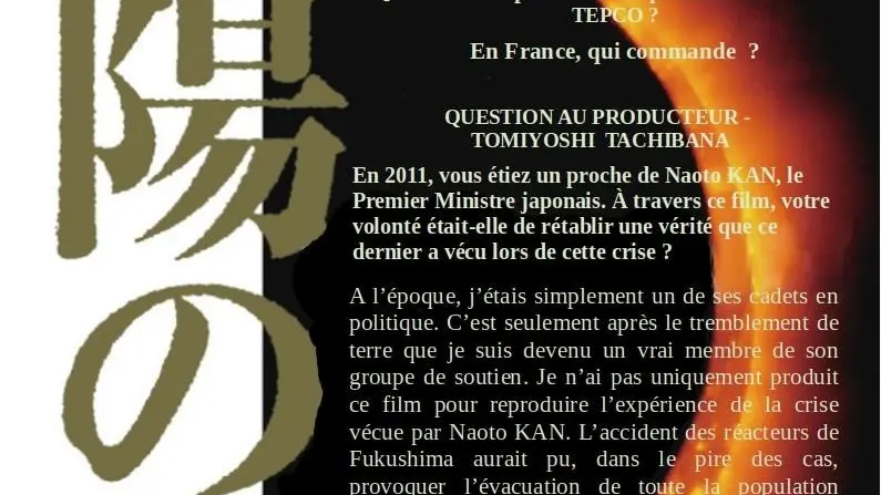 Outre le déroulement des 5 jours de catastrophes successives, le film pose la question générale : qui commande ? L’État ou TEPCO ? TEPCO : fournisseur d’électricité japonais.
