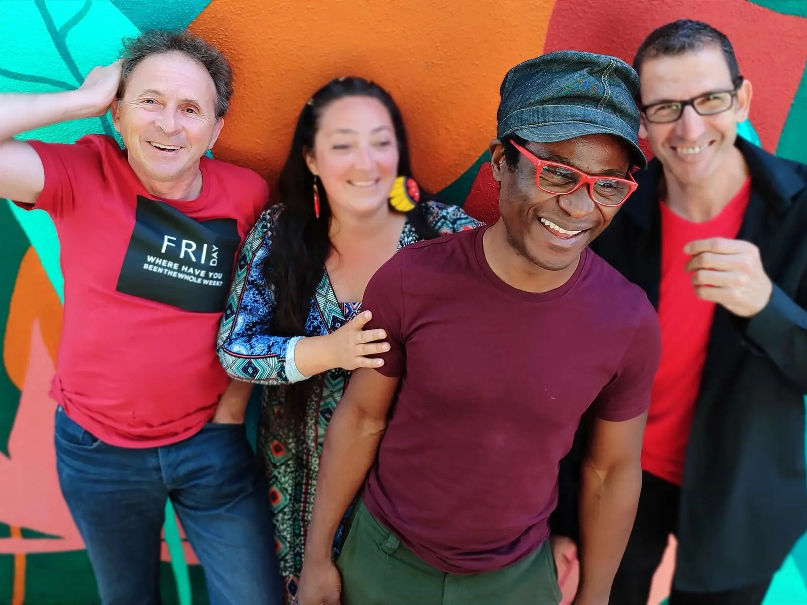 Petit balcam (& grandes oreilles) est un bal aux dynamiques africaines, principalement camerounaises, qui donne envie à tous, petits et grands, de se bouger, de danser, guidés par les transes endiablées des quatre compagnons.