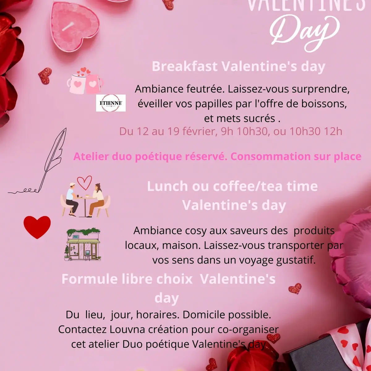 * Du 12 au 18 février 2026. Étienne coffee and shop, 2, rue de la Paix, Saint-Nazaire. Tarif : Formule duo 30€. Inscription avant le dimanche 15 février. Contact : 0641444602, [email protected].