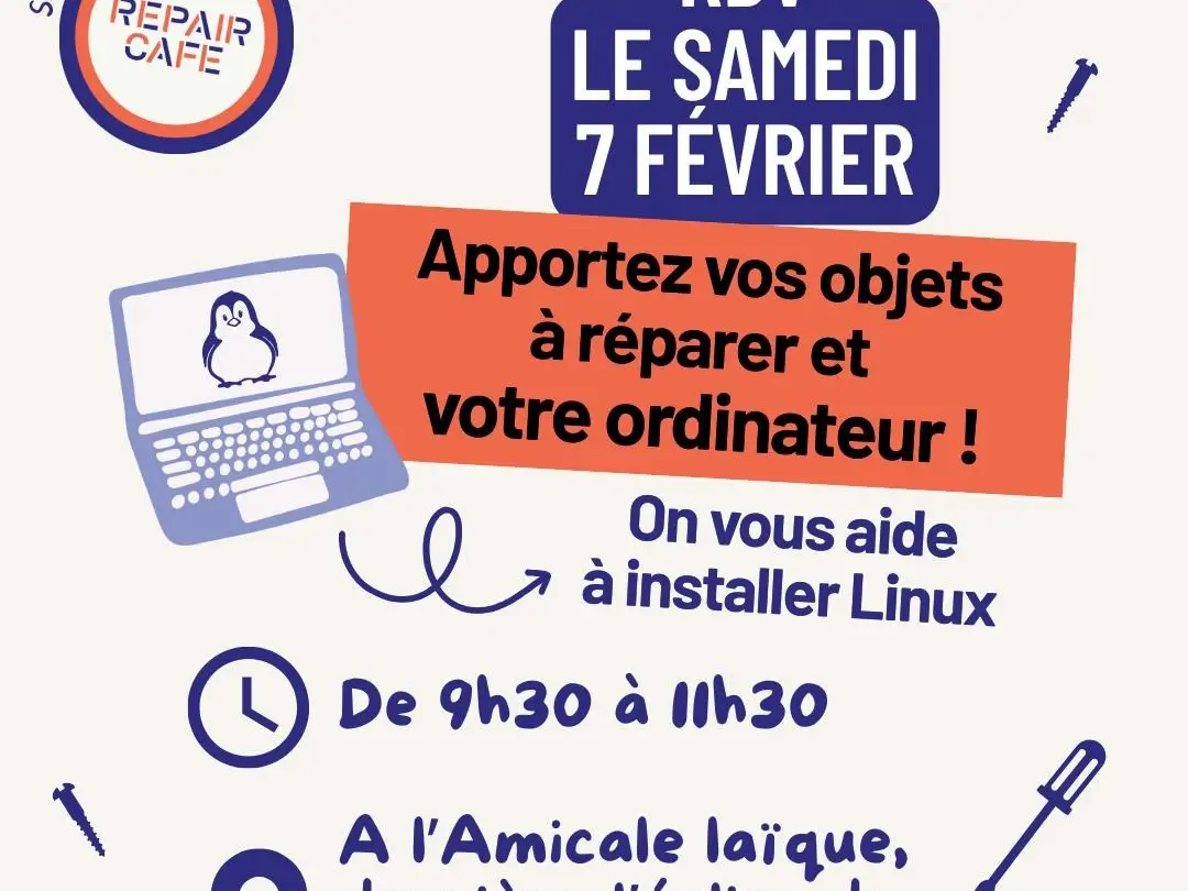 Apportez également votre ordinateur, on vous aidera à installer Linux (places limitées, nous contacter par mail).