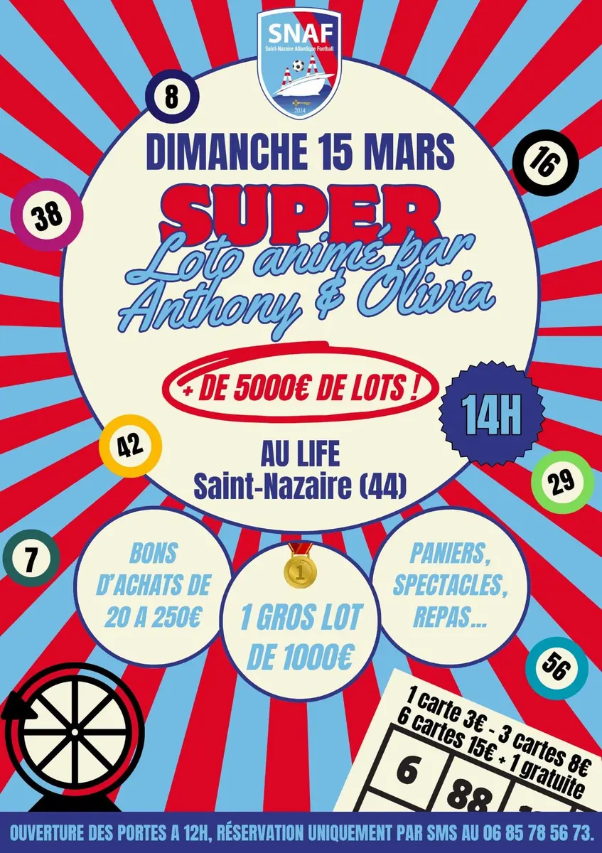 Dimanche 15 mars 2026 à 14h00. Life, 322, boulevard de la Légion-d'Honneur, Saint-Nazaire. Inscription avant le samedi 14 mars. Contact : 0685785673.