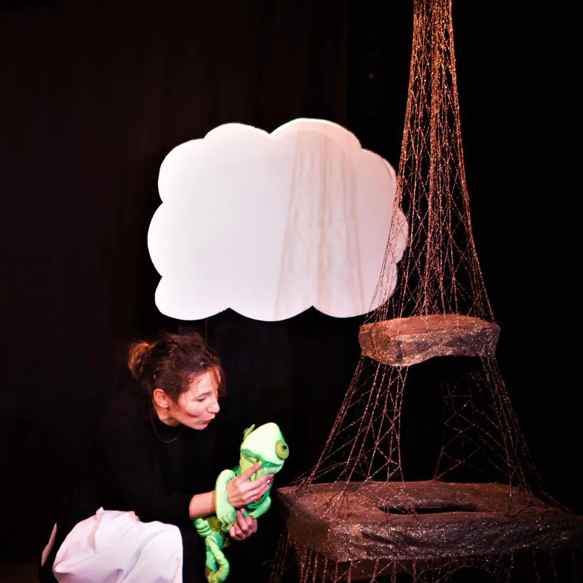 Alliant la douceur d’un conte à une interprétation théâtralisée, Véronique Balme va faire évoluer son personnage principal en le faisant s’adapter aux diverses situations rencontrées, utilisant tant marionnettes que sa propre personne.