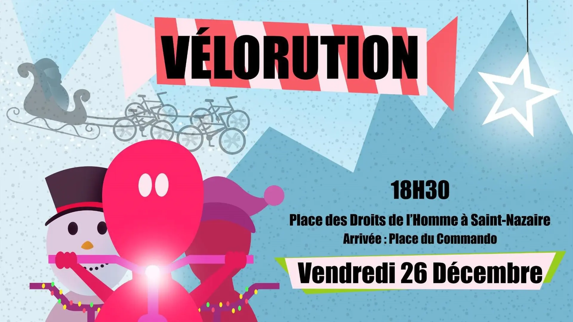 Vendredi 26 décembre 2025 de 18h30 à 20h00. RDV au Dragon des mers, Place des Droits-de-l'Homme, Saint-Nazaire. Gratuit. Contact : https://velorutionsaintnazaire.fr.
