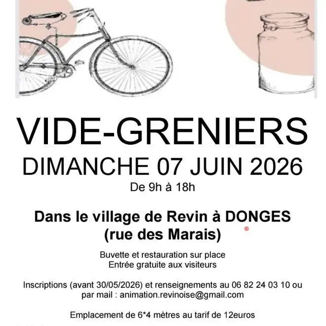 Dimanche 7 juin 2026 de 08h00 à 18h00. Salle des fêtes de Revin, 24, rue des Marais, Donges. Gratuit. Contact : 0682240310, [email protected].