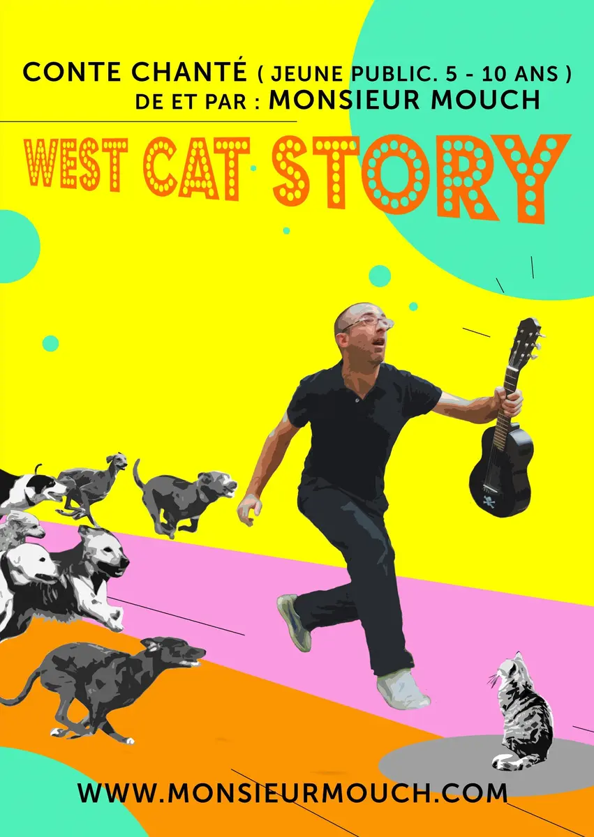West Cat Story est une histoire racontée en chansons. Une histoire de chiens et de chats qui se font la guerre dans le quartier, et ne supportent pas qu’un chien et un chat, Toto et Moustafa, se retrouvent autour d’un amour commun, celui de la musique.